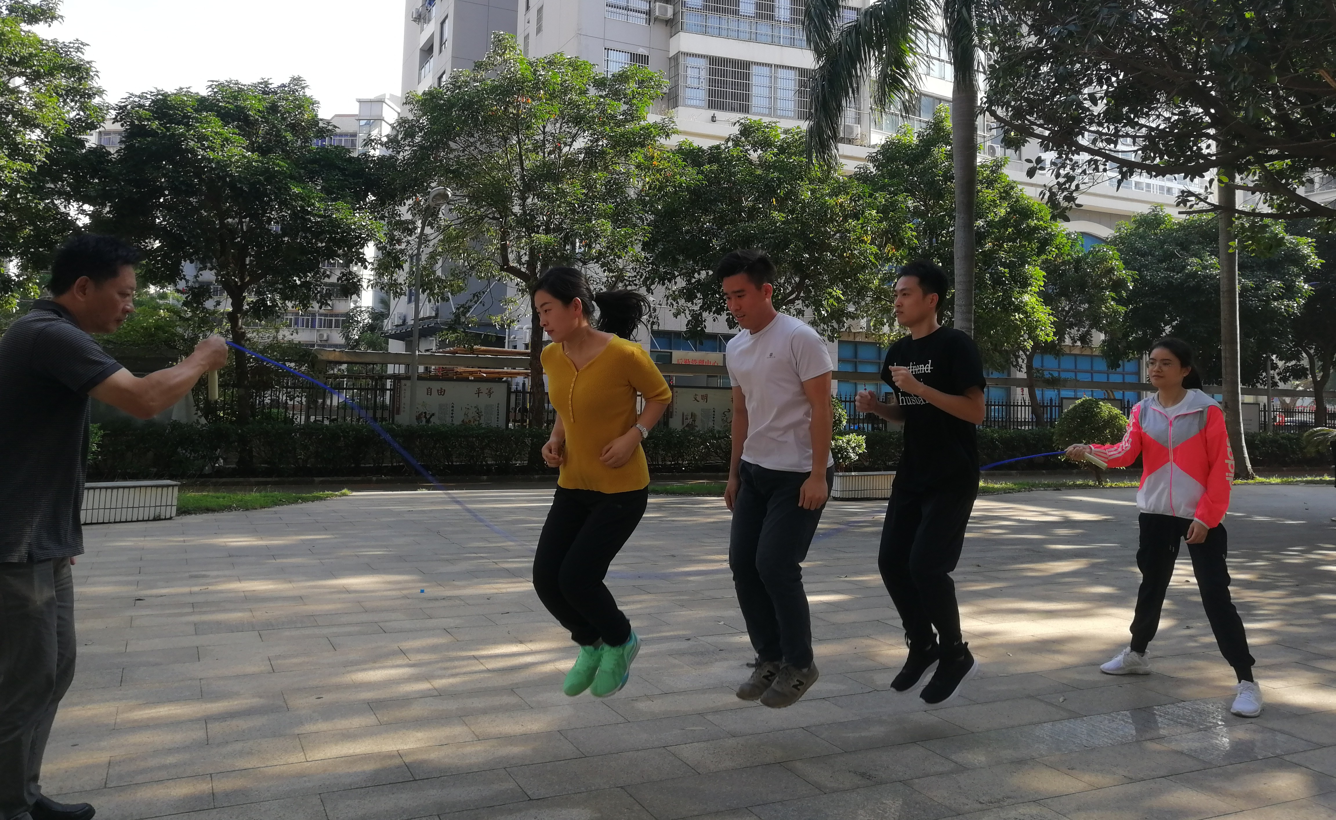 跳繩小隊也“不甘落后”,在下午的“趣味跳繩”小組賽中以124個的成績進入十六強。